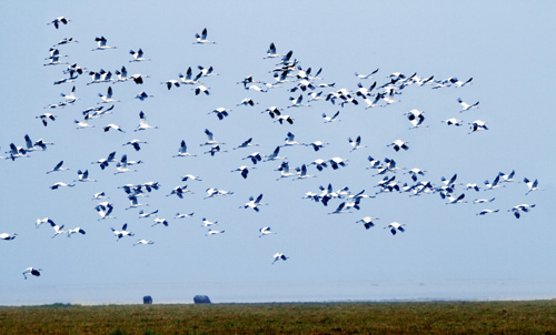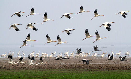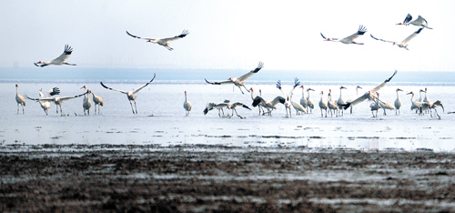 3月8日,我们来到候鸟天堂——永修县吴城镇鄱阳湖湖区,为即将返回北方的候鸟们送行。湖区内的白鹤目前成集聚状态,2000多只白鹤分块状集聚,吹响返回北方集结号。据鄱阳湖自然保护区管理人员介绍,今年白鹤集聚比往年稍后,而且数量增加不少,实为近几年少见。