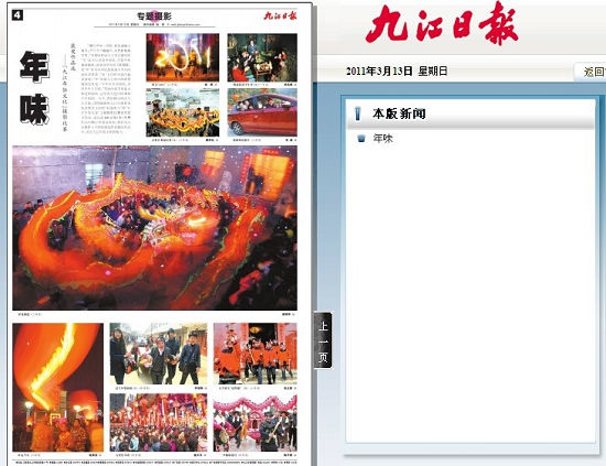 3月13日,《九江日报》4版专题摄影栏目整版刊发由九江日报、浔阳晚报和九江市摄影家协会联合主办的“虹能电力”杯“九江年俗文化”主题摄影比赛获奖部分作品。