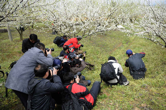 摄友们在梨园采风。