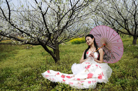 美丽的模特为桃花节增光添彩。