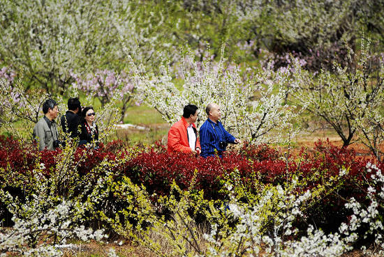 游客在桃花园里尽享桃花美景。