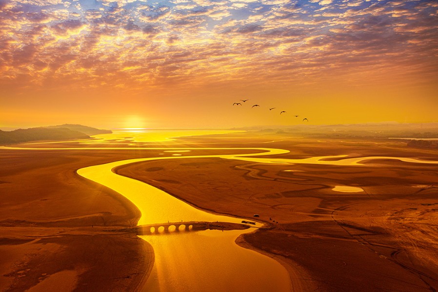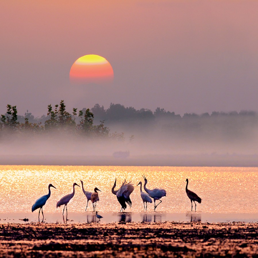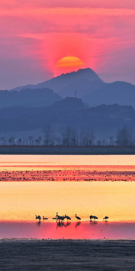 《鄱湖湿地夕阳红》(在大美中国—2023第五届全国旅游摄影大赛获铜奖) 陶淼金 摄