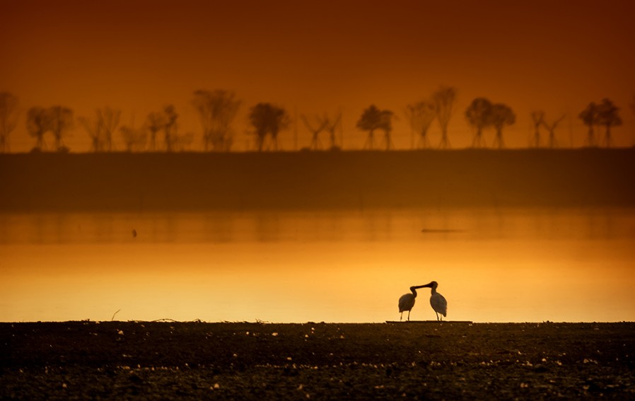 《白琵鹭的爱情》(在大美中国—2023第五届全国旅游摄影大赛获金奖) 陈建红 摄