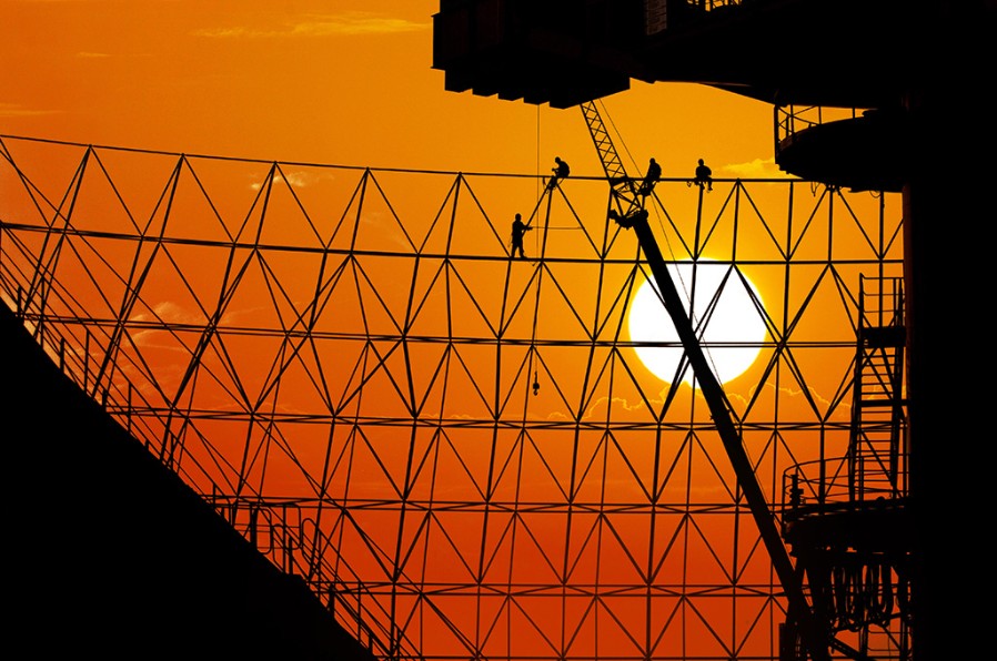 《火红的工地》(第25届全国艺术摄影大赛获优秀奖) 李国旗 摄