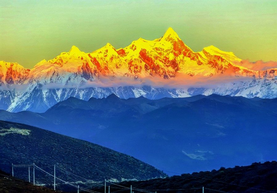 《贡嘎衔晚,云幡共雪》 陈建红 摄