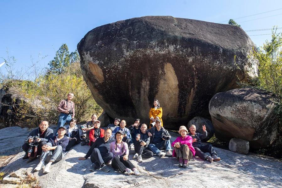 部分采风人员沿着水声探至小九宫仙女潭,只见溪流漱石,清泉淙淙,冬日的树木疏落有致。光线穿过枝丫,在水面与青苔石上投下跃动的光斑,参天巨石成了大家打卡拍摄的理想背景。摄影爱好者们或俯身贴近水面,或登高寻找视角,快门的轻响与自然的静谧交织在一起,大家用心捕捉这灵秀之地的诗意画面。
