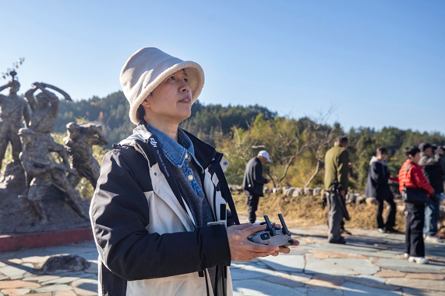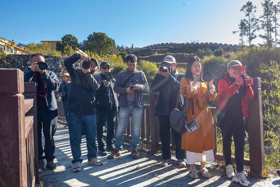 当天上午,采风团首先来到九宫村。在巍然矗立的红军岗哨台塑像前,大家利用相机、无人机等设备,将朝阳下的红军塑像定格为永恒的历史记忆。走上红军桥,古朴的桥墩诉说着岁月的故事;潺潺流水声中,仿佛能听见往昔军民同心的回响。随后,大家走进苏维埃政府旧址,这里保存着承载历史记忆的浮雕、壁画以及简朴的旧物,每一处细节都成为摄影爱好者探寻红色记忆的生动素材。
