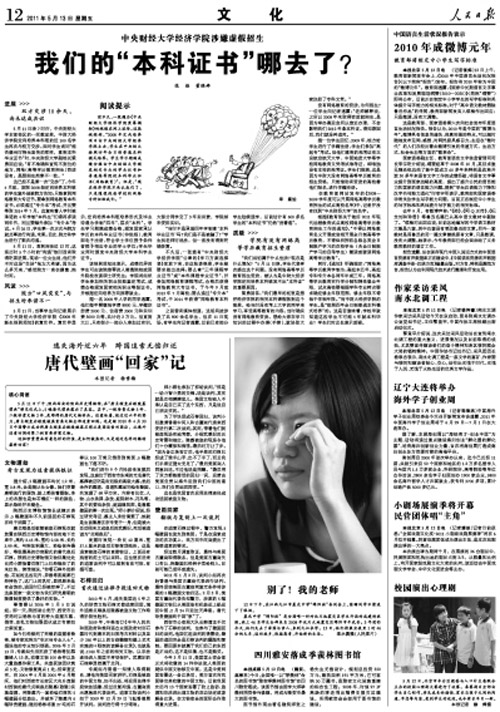 九江摄影网讯   5月13日,《人民日报》第12版刊发了九江日报副总编、市摄协主席宋小勇拍摄的,反映九江市晨光中学“绵阳班”学子完成学业,惜别九江的新闻照片《别了!我的老师》。同日,这幅照片与其他两幅照片在中国新闻网上也得到刊发。