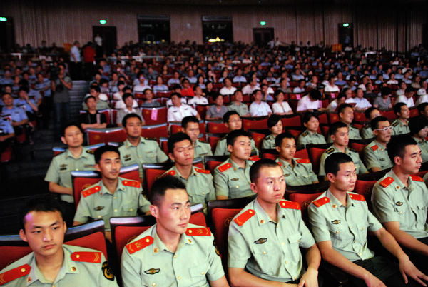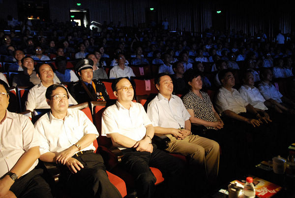 九江摄影网讯(沈双武)7月25日下午,江西本土原创电影《今天我出警》首映式在江西省艺术中心举行。省委副书记张裔炯,省委常委、纪委书记尚勇,省委常委、宣传部长刘上洋,省委常委、政法委书记、省公安厅厅长舒晓琴,省人大常委会副主任陈安众,副省长朱虹,省政协副主席郑小燕,省政协副主席、市委书记钟利贵,省高级人民法院院长张忠厚,省人民检察院检察长曾页九,省武警总队总队长陈宏举,市委副书记、市长曾庆红,副市长、市公安局长陈光明出席首映式。市委常委、宣传部长冯静主持。首映式之前,张裔炯等省市领导亲切会见了电影《今天我出警》主创人员和创作原型瑞昌市肇陈派出所洪一乡驻村民警周俊军。