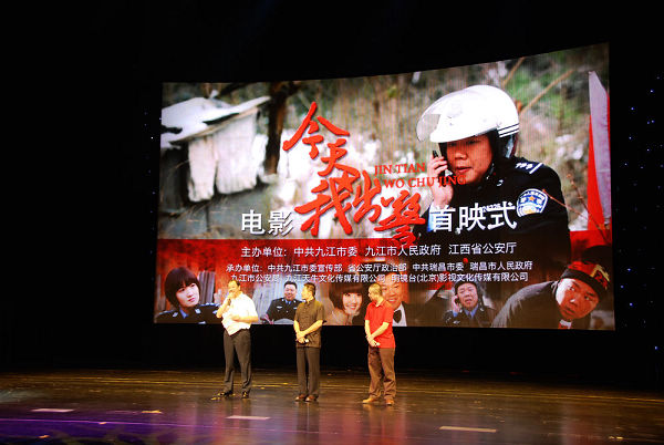 首映式结束后,电影《今天我出警》举行了媒体见面会。《今天我出警》是一部根据江西省瑞昌市公安局肇陈派出所洪一警务室民警周俊军事迹改编创作的电影。该片由九江天牛文化有限公司投资1000万元拍摄,出片方完全是民营企业独立投资,于瑞昌完成全程拍摄。该片由知名导演张轩南执导,男主角由曾经出演《武林外传》的喜剧演员姜超担任,女主角由央视六套主持人蒋小涵主演。影片通过喜剧形式表现了一名普通民警出警一日的平常小事,借此颂扬了像周俊军一样扎根基层、做好社区警务,全心全意为人民服务的优秀人民警察。影片制作班底集结内地、港台等华语业界精英,原汁原味展现了江西瑞昌的风土人情、自然景色、和谐社会。