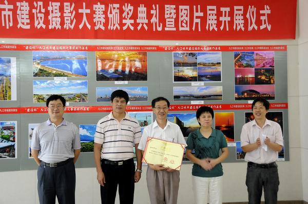 九江摄影网讯(沈双武)8月22日上午,“建设杯”九江城市建设摄影大赛颁奖典礼暨获奖作品展览在市建设规划局一楼大厅举行,九江市建设规划局局长许立仁、副局长夏川,九江市文联副主席陆建珠,九江日报社副总编、九江市摄影家协会主席宋小勇,副主席杨青,副主席陈杰,九江市城建档案馆馆长周起鑫等出席颁奖典礼并为获奖者颁奖。市摄协会员和市建设规划局干部职工近百人参加典礼并参观展览。颁奖典礼由九江市摄影家协会副主席蔡杰主持。 本次大赛和获奖作品展由九江市建设规划局、九江市文联、九江市摄影家协会、九江市城建档案馆联合举办,历时6个月,共收到来自11个县(市、区、山)的70多位摄影家和摄影爱好者选送的各类摄影作品近1000幅,共评出等级奖和入选作品共160多幅展出。作者中有七八十岁的耄耋老人,有十几岁的英俊少年,参赛作品从黑白到彩色,从主城区基础设施建设到民生工程建设,从县乡城镇化建设到生态环境建设,从城市风光到建设者风采,内容丰富,题材多样,全面、形象地反映了近年来我市“两区互动、强工兴城”建设的伟大成就,展现了城市建设发生的翻天覆地的变化,充分展示了我市城市建设和城镇化建设进程中的重点项目和亮点,讴歌了为改变城市面貌而作出贡献的城市建设者,进一步激发了全市人民群众建设美好家园的巨大热情,这些作品画面语言生动,拍摄视角独特,是九江摄影人和城市建设者为即将召开的九江市第十次党代会献上的一份厚礼。 据了解,“建设杯”九江城市建设摄影大赛获奖作品展览将在市建设规划局集中展示1个月。