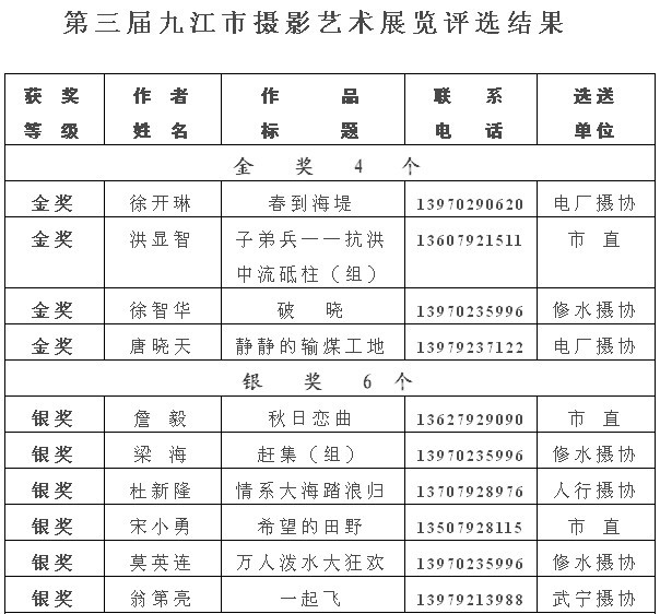 第三届九江摄影艺术展览评选结果揭晓