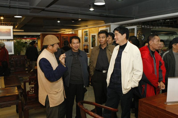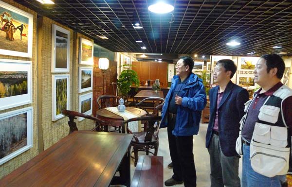 10月31日,出差回来的市摄协名誉主席洪世坤,主席宋小勇、副主席蔡杰参观展览