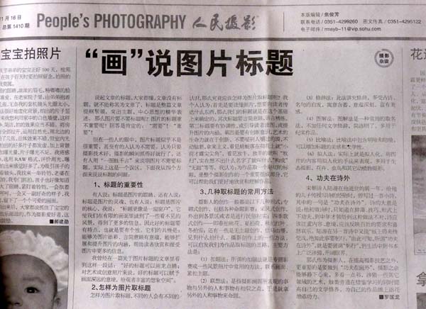 《人民摄影》发表匡龙文章《“画”说图片标题》