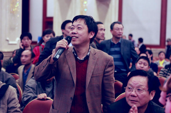 高级记者、教授、资深摄影家成卫东在讲座中。