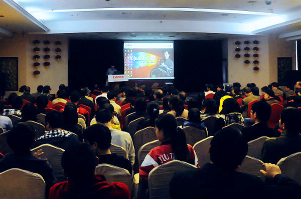 九江摄影网讯(沈双武)11月27日,中国摄影家协会会员、中国新闻摄影学会理事、《民族画报》社高级记者、教授、资深摄影家成卫东应邀来到九江参加佳能摄影大篷车活动,在九江雅格泰大酒店为摄影爱好者们授课。