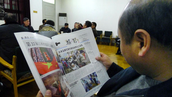参会常务理事阅读九江市摄影家协会会刊《摄影》报。 (宋小勇 彭学平 摄) |