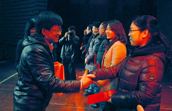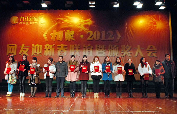 九江摄影网讯(木力)2012年1月8日下午,《相聚·2012》九江新闻网网友迎新春联谊暨颁奖大会在九江青少年活动中心隆重举行,九江市摄影家协会主席、九江日报社副总编宋小勇,九江新闻网总编辑高立东出席活动并为获奖者颁奖。一批摄影师和模特受到表彰。 2011年,九江新闻网举办了首届“百姓心目中的好老师”评选、“十大最有影响力帖文”评选活动;还与九江市摄影家协会联合举办了第一届九江“完美女孩”网络摄影大赛。在迎新春联谊暨颁奖大会上,先后对以上活动获奖者进行了表彰,同时还进行了文艺表演和游戏、抽奖等活动。