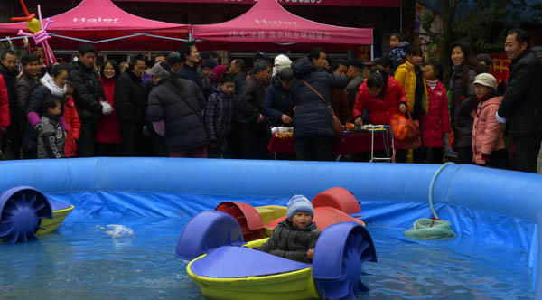 在庙会玩耍的孩子。