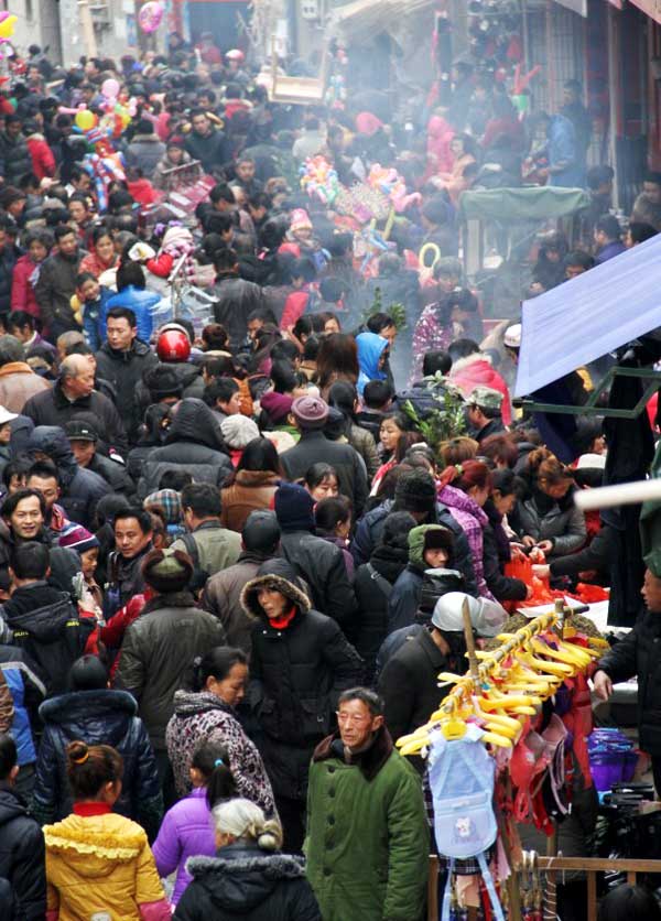 庙会上人头攒动热闹非凡。