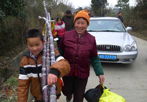 奶奶、孙子满载而归。