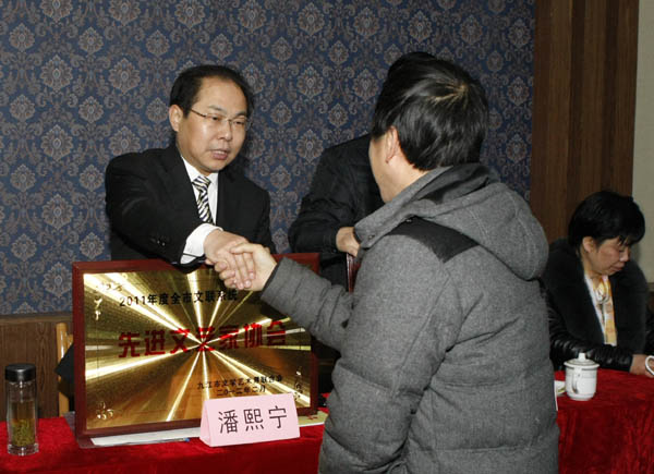 市委常委、宣传部长潘熙宁为市摄影家协会颁奖。