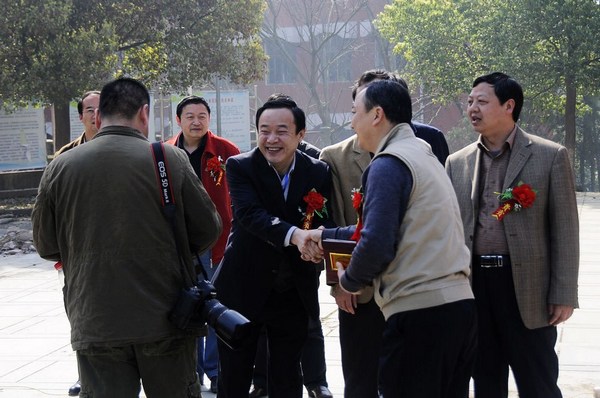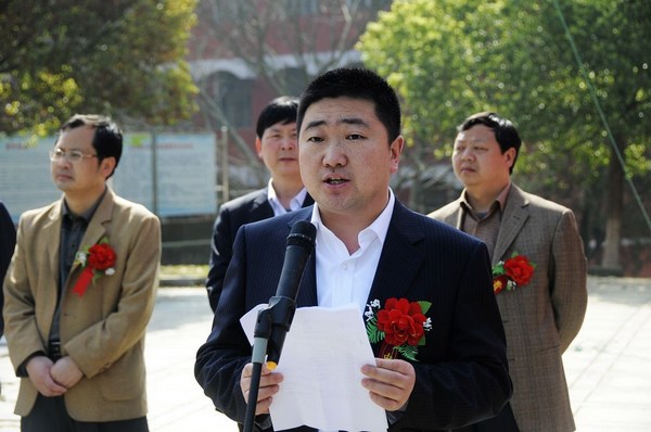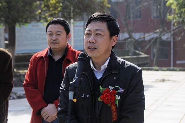 宣传部副部长汪国山、苏山乡党委书记陈安邦、县新村办主仼刘圣保与一等奖杨帆、二等奖黄勇合影