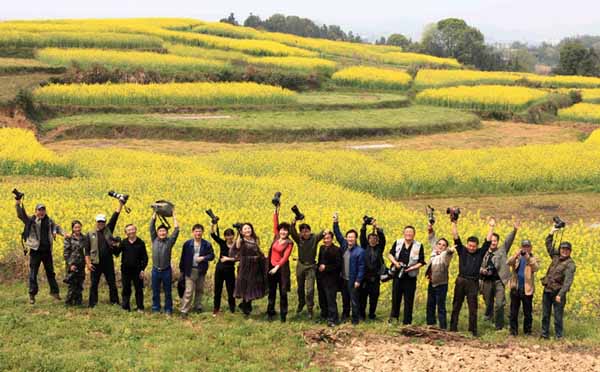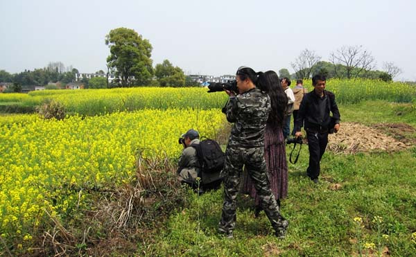 摄影师们在农村采风时兴高采烈时的情景