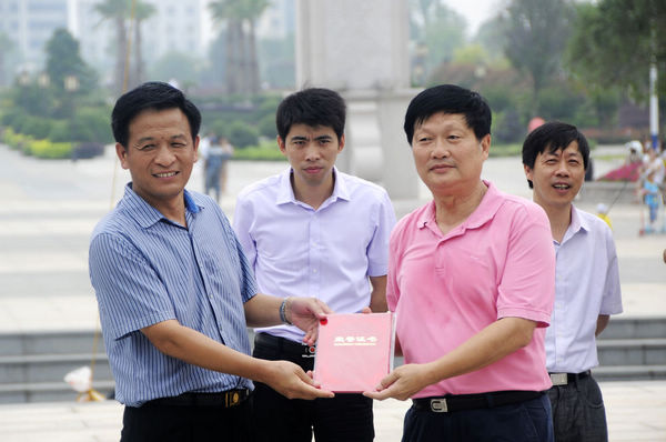 庐山区委常委张金水为一等奖获得者田小元颁奖