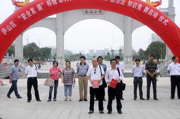九江摄影网讯(沈双武)6月9日上午,由庐山区文联、庐山区安监局、庐山区摄影协会共同举办的庐山区“安全发展杯”摄影比赛颁奖仪式暨获奖作品展览活动在南山公园举行。参加颁奖仪式的领导有:九江市安监局副局长熊杜明、庐山区委常委张金水、庐山区人大常委会副主任胡茂浔、庐山区政协副主席吴美珠、九江日报副总编、九江市摄影家协会主席宋小勇,庐山区安监局局长陈励召、九江市摄影家协会副主席梁建民、庐山区文联主席罗金荣、庐山区摄影协会主席桂剡高等。