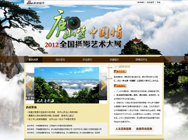 协办链接: http://city.sina.com.cn/city/f/lushan2012/ 庐山梦 中国情——2012全国摄影艺术大展 |