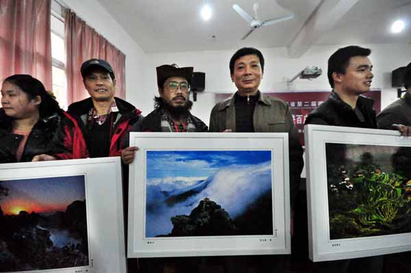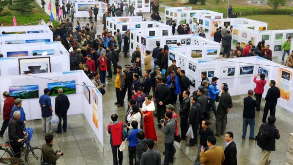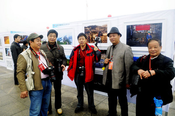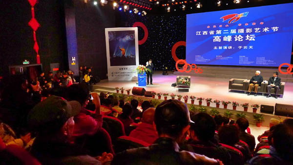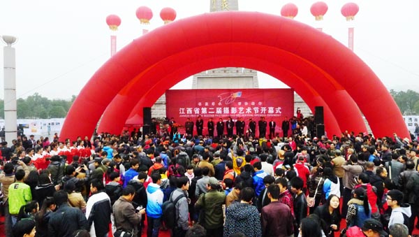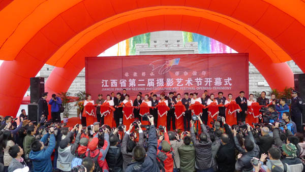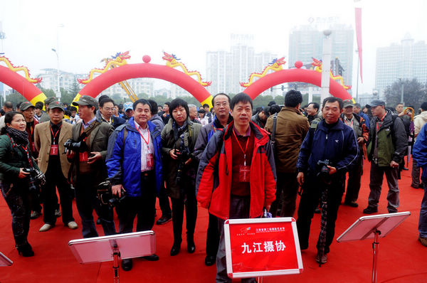 江西省第二届摄影艺术节隆重开幕会场。 九江摄影网讯(沈双武)11月25日上午,由中共萍乡市委、萍乡市政府和江西省文联、省摄影家协会共同主办的江西省第二届摄影艺术节在萍乡市秋收起义广场隆重开幕,在3天的时间里,80多个摄影专题展、1500多名摄影家的4000多幅摄影精品,将为广大群众奉献一场视觉恢宏的饕餮盛宴,秋收起义广场变成影像的海洋。据悉,这是江西历史上规模最大、规格最高、活动最多、影响最广的摄影盛会。 江西省人大常委会副主任、省总工会主席陈安众,省政府党组成员、顾问、省摄影家协会名誉主席孙刚,省政协副主席汤建人,省人大常委会原副主任、省摄影家协会名誉主席朱英培,中国摄影家协会分党组成员、副秘书长高琴,省文联党组书记汪天行,省文联副主席鄢平原,萍乡市委书记刘和平,市委副书记、市长陈卫民等为开幕剪彩;萍乡市委副书记颜赣辉,市人大常委会主任黎德廉,市政协主席晏德文,市委常委、宣传部长彭艳萍,市委常委、市委秘书长张学民,市人大常委会副主任曾祥军,副市长亓丕华、市政协副主席陈朝清,市政府秘书长李德雄及省摄影家协会主席团成员,周边兄弟省市摄协负责人和摄影家、摄影爱好者、新闻记者参加了开幕式。 陈安众代表省委、省人大、省政府、省政协,高琴代表中国摄协,陈卫民代表萍乡市委、市政府和187万萍乡人民,汪天行代表省文联分别对艺术节的成功举办表示热烈祝贺! 九江市摄协对这次艺术节高度重视,市摄协主席宋小勇、副主席杨青,副秘书长沈双武、蔡少敏率影友参加或提前到萍乡布展、为影友做好接待工作。通过精心组织,包括庐山摄协、修水摄协、武宁摄协、永修摄协、德安摄协、职工摄协、九江电厂摄协在内的基层摄协组织和市直单位的摄影爱好者共80余人参加了这次活动,是参加人数最多的设区市之一。通过参观展览,他们普遍认为收获不小,开阔了眼界,对今后摄影艺术创作大有帮助。艺术节上九江展出的作品有《九江秀色可揽结》(综合展)、《无限风光在庐山》《修水国宝——中华秋沙鸭》《重温九江抗洪历史 再现军民堵口风采》《闪光的风采——国电九江发电厂专题》《生态共青城》、燕平等9人《“青藏高原”专题》,包括九江作者的作品参加江西省第七届青年摄影艺术展、江西省风光摄影协会的《风光摄影展》等展览,在艺术节上共展出九江作者作品270余幅,展出专题和作品是全省设区市最多的市之一,成功地推出了一批新人新作。在27日上午进行的优秀作品评奖中,九江选送《无限风光在庐山》《修水国宝——中华秋沙鸭》被评为“优秀摄影展”;《长江丽湾》(纪德文 摄)、《鸟瞰甘棠夏如画》(陈敬瑞 摄)等11幅作品被评为“优秀摄影作品”。 在开幕当天,还开展了萍乡民俗文化精髓——傩舞、缩龙表演、傩面具雕刻演示、“金像影视”人像模特走秀和摄影器材试拍等活动。同时,中国首届金像奖获得者、著名风光摄影家于云天和我省著名摄影家宫正、青年摄影家肖戈等就风光摄影创作等进行专题演讲,并与广大影友“面对面”进行广泛交流。在“百名摄影家百幅作品进百户农家”文化公益活动中,100名优秀摄影家还分赴麻山镇幸福村和城郊管委会略下管理处向100户村民赠送摄影精品,让高雅艺术品“飞入寻常百姓家”。九江庐山摄协的李延国、朱玉善等也在其中。