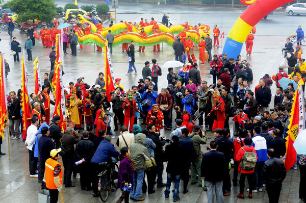 开幕式上的萍乡民俗文化精髓——傩舞、缩龙表演。