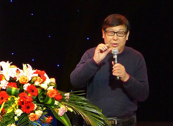 特邀嘉宾中国首届金像奖获得者、著名风光摄影家于云天在演讲中。