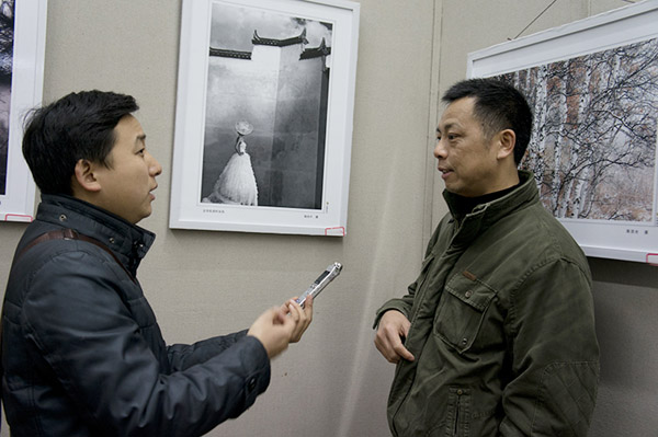 媒体记者采访在江西省第二届摄影艺术节中获得“优秀摄影作品”奖的作者陶剑平。