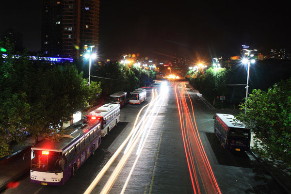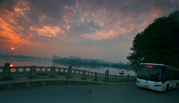 《晨曦中的新公交》(优秀奖) 熊希福 摄