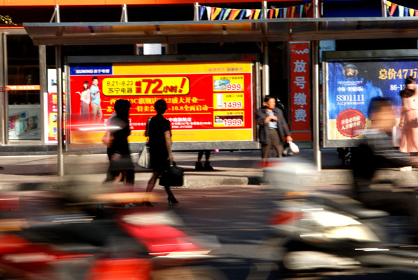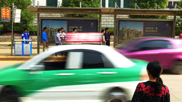 《车轮旁的广告》(组图、优秀奖) 扈才汉 摄