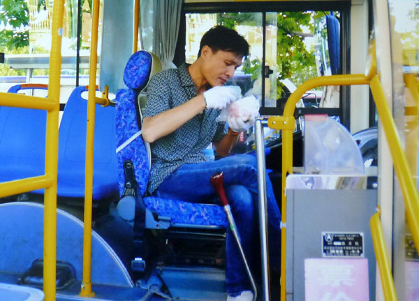 《敬佩公交清洁工》(三等奖) 李定华 摄