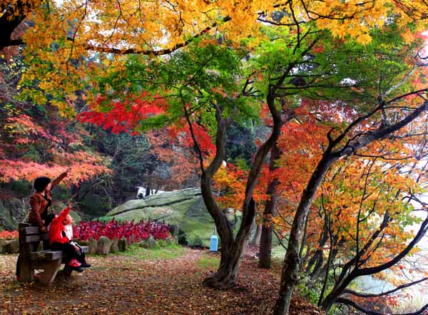 《三母子观七彩枫叶》(三等奖) 魏水海 摄