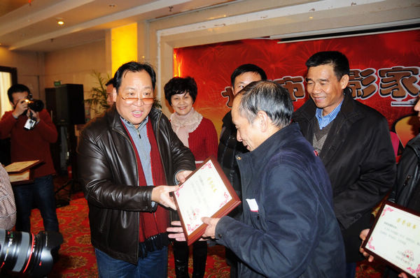 市委巡视员、市摄影家协会顾问朱建国为先进集体颁奖