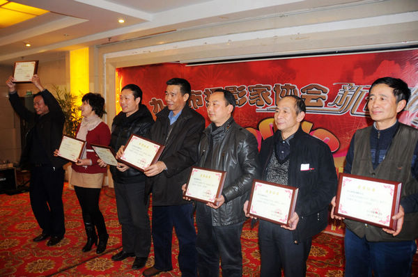 九江摄影网讯(沈双武)1月19日下午,九江市摄影家协会2013年迎新春联谊会在市金轩益君大酒店隆重举行。市委巡视员、市摄影家协会顾问朱建国,市文联副主席陆建珠,江西民进摄影学会会长、江西财经大学摄影学会副主席肖戈,市摄协名誉主席洪世坤,市摄协顾问燕平、田小元等嘉宾应邀出席。市摄协班子成员和来自全市各基层摄协的350余名摄影爱好者会聚一堂,大家一起分享摄影给他们带来的快乐。 联谊会上,市摄协主席宋小勇致新年贺词,市摄协副主席兼秘书长陈杰宣布了2012年度先进集体、优秀会员获得者名单,副主席邹树汉宣读了中国摄影报社发来的贺信,摄协领导和嘉宾为先进集体、优秀会员获得者颁奖。我省著名青年摄影家肖戈应邀为九江摄友举办了一场精彩的个人专题摄影讲座《赞美自然》。中摄协会员、市摄协常务理事詹毅点评了2012年我市摄影家重点获奖摄影作品。会上表彰了在九江市第二届“信华杯”城市建设摄影大赛、“大明眼镜杯新公交、新媒体、新形象”摄影大赛、“驿动风杯”九江市第三届舞蹈摄影比赛摄影比赛获奖作者。会上还进行了省第二届摄影艺术节九江入选作品汇报展,会员们对九江市摄影家协会征集的会徽式样进行了投票选举,协办单位九江巍然数码电子科技有限公司进行了产品推介。期间穿插进行了舞蹈、葫芦丝独奏、萨克斯独奏等才艺表演和抽奖活动。联谊会在九江摄影别动队集体联欢舞江南style中圆满落幕。