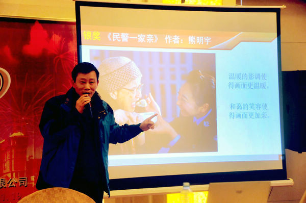 图为联谊会上詹毅正在点评2012年摄影作品。