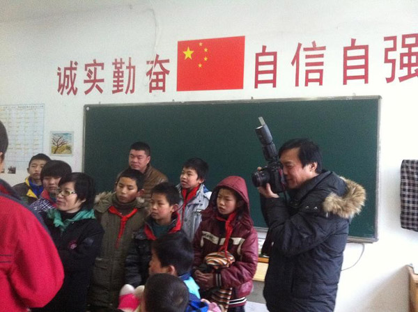 2013年1月22日,燕平在九江博爱聋校采访。 (郑元辉 摄)