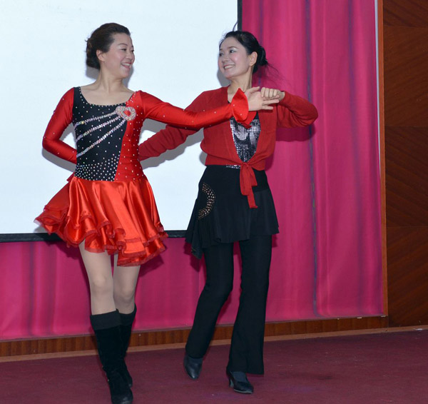 联谊会上还穿插表演了男、女双人舞,男声独唱、吉特吧