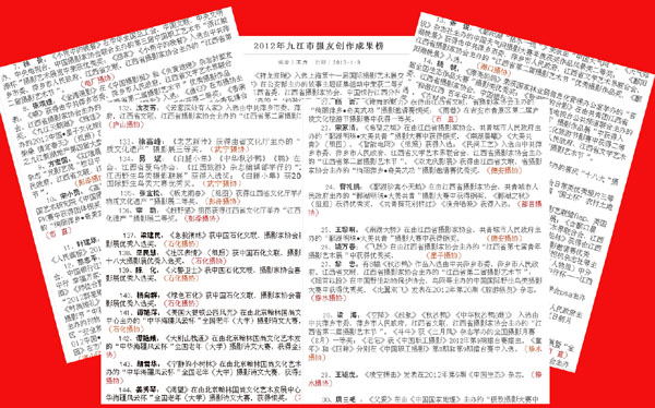 据“九江摄影网”《2012年九江市摄友创作成果榜》上公布的名单和获得入选或获奖的作品来看,九江市的摄影朋友在2012年当中,有近150余位作者的作品在省以上的摄影展览中入选或在摄影比赛中获奖,普及率之大在九江也是空前的。说明九江的摄影基础在不断坚实。