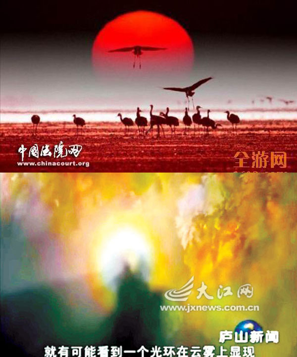 (1)庐山综合垦殖场退休职工秦永言拍摄的“庐山佛光”录像视频作品,被电视台用来制作参评新闻短片,并获江西省优秀广播电视新闻一等奖等多个奖项。2月13日上午,这起因庐山佛光录像视频作品引发的著作权侵权纠纷,在九江市中级人民法院开庭审理。后在九江市中级人民法院法官主持下双方达成了谅解,秦永言5月7日向法院提出撤诉,双方握手言和。据了解,该案是目前江西首例因录像视频作品而引发的知识产权著作权侵权纠纷。(2)2011年3月,九江摄影家林魂发现杭州网发网络信息技术有限公司在其网站(全游网www. 3608. com)上未经其许可,擅自使用其拍摄的12幅鄱阳湖珍稀候鸟写真图片,遂以侵犯其著作权为由,将该公司和网站告上法庭。2012年5月,此案经浙江省高级人民法院二审调解,林魂胜诉获赔3万元。