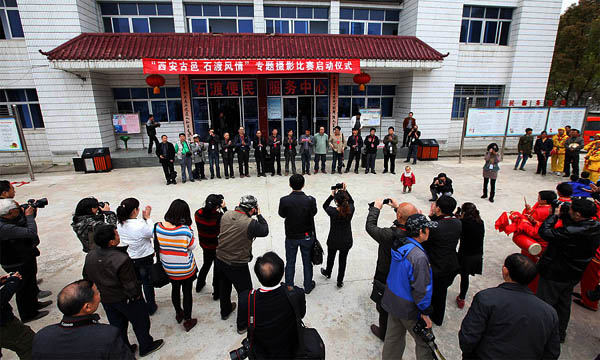 九江摄影网讯(蒋德先)3月30日,由九江市摄影家协会、武宁县石渡乡人民政府主办,武宁县摄影协会承办的“西安古邑 石渡风情”专题摄影比赛在武宁县石渡乡人民政府举行启动仪式,来自九江各县、区的摄影爱好者80多人参加启动仪式。 市摄影家协会主席宋小勇、副主席兼秘书长陈杰、副主席罗匡龙、副秘书长沈双武、蔡少敏、张项理,武宁县摄影协会名誉主席熊未喜、县文联主席雷鸿尧、石渡乡人民政府乡长邵兴华、武宁县摄影协会主席徐高峰、荣誉主席石教成、副主席王敏、蒋德先、黄华军、王臻等出席。 启动仪式由雷鸿尧主持,邵兴华代表武宁县石渡乡人民政府致欢迎词,陈杰宣读“西安古邑 石渡风情”专题摄影比赛工作方案,宋小勇宣布“西安古邑 石渡风情”专题摄影比赛开镜。民间龙灯队、腰鼓队进行了精彩的助兴表演。期间还组织会员前往柳山顶峰、石渡乡新农村建设点、中华鲟养殖基地进行采风创作,并举行了武宁县摄影协会盘溪创作基地的揭牌仪式。 据了解,本次“西安古邑 石渡风情”专题摄影比赛,旨在反映石渡乡经济社会和谐建设发展的成就、美丽的山水风光、厚重的历史文化和纯朴的风土风情,更好地向外界宣传推广石渡,为石渡经济社会建设更好更快发展服务。