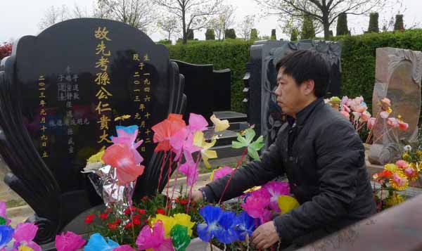 4月4日下午,宋小勇在贺嘉山陵园祭奠孙仁贵老师。