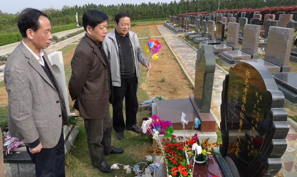 4月8日下午,九江日报社员工在贺嘉山陵园祭奠孙仁贵老师。