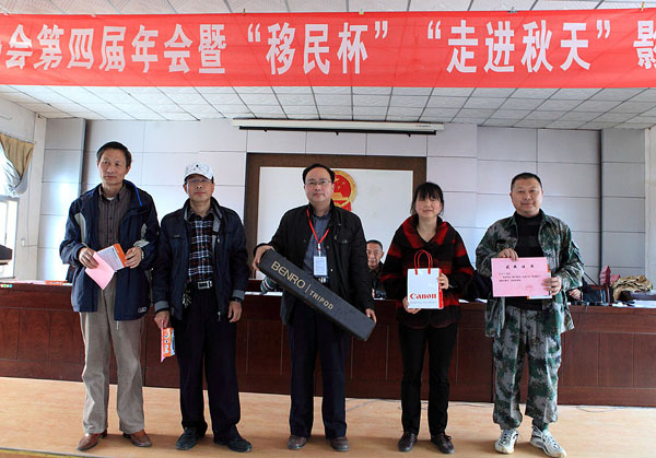 九江摄影网(蒋德先)3月30日,武宁县摄影协会第四次年会暨“移民杯”、“走进秋天”摄影比赛颁奖仪式在石渡乡举行,来自全县的50余名会员参加了会议。市摄影家协会主席、九江日报副总编宋小勇、名誉主席熊未喜、县文联主席雷鸿尧、石渡乡乡长邵兴华、县扶贫和移民办副主任易发善、县摄影协会主席徐高峰、副主席王敏、蒋德先、黄华军、马艳芳、王臻、张项理、副秘书长徐水源参加会议。会议由王敏主持。 宋小勇主席首先代表九江市文联、九江市摄影家协会宣读关于任命武宁县摄影协会副主席张项理同志担任九江市摄影家协会常务理事、副秘书长的决定。他指出,过去的一年,武宁县摄影协会广大会员用影像宣传武宁,讴歌家乡,积极开展摄影艺术创作、摄影展览、摄影比赛等交流活动,取得较好的成绩。他希望武宁县摄影协会要立足身边,立足本土,积极创作更多更好的精品力作,在国家级、省级摄影展览、大赛中实现新的突破。 县文联主席雷鸿尧介绍了即将在武宁举办的全国摄影大赛的筹备情况,并要求广大会员积极参与活动,拍出最美的山水武宁摄影佳作。县扶贫和移民办副主任易发善代表“移民杯”影赛主办单位讲话,表示今后扶贫和移民办将一如既往支持武宁摄影工作。 徐高峰传达了省摄协五届二次常务理事会暨全省摄影工作总结表彰会精神,总结2012年工作,部署2013年任务;蒋德先宣读协会人事调整的决定、新入本会会员及会员加入上级协会情况通报;黄华军通报2012年会员在市级以上作品获奖、参展、发表情况;王臻宣读表彰2012年度优秀会员的决定;张项理通报首届“移民杯”摄影大赛、“走进秋天”摄影比赛作品评选结果。 会议表彰了2012年度优秀会员,对武宁县首届“移民杯”摄影大赛、“走进秋天”摄影比赛获奖作者进行颁奖。